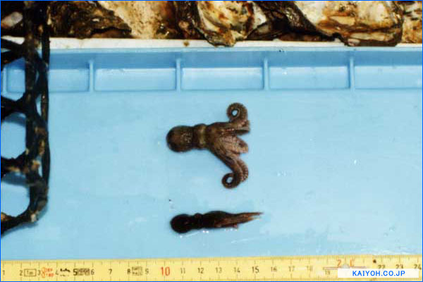 カキ殻餌料培養基質に潜入していた稚ダコ