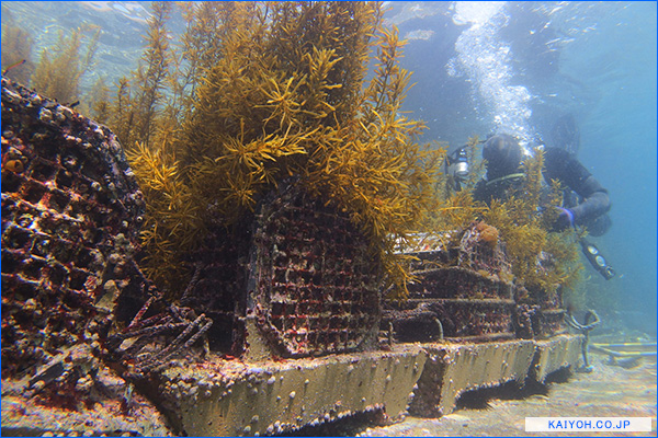 貝殻で作られた魚礁「JFシェルナース」により、貝殻が微生物や小型動物の棲みかとなり魚を育て、海を育みます。海のものを海に戻す、これぞ大自然の法則。